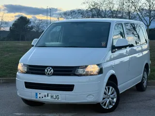 Volkswagen Transporter T5 Facelift 2.0 TDI 115cv 9 plazas Restyling Euro5. No lleva AdBlue ! Motor muy fiable, cero fallos. Siempre revisado en la casa de VW y talleres oficiales. Solo 236.000km. Libro de revisiones sellado completamente. Facturas mas de 5000€. Km originales, demostrables y certificados en el contrato. Correa de distribución cambiada a los 200.000km. Embrague nuevo. Filtros, aceite, liquido de frenos recien cambiados. El coche esta en perfecto estado, muy cuidado, como nuevo. Impecable tanto exterior como interior. Color original, sin accidentes. Nunca se ha usado para carga. Uso Familiar. Tipo: Turismo (ITV cada año) Equipamiento: climatización y calefacion bizona delante y detrás, navegador, crucero/limitador de velocidad, Aux-Bluetooth (manos libres), sensores de aparcamiento delanteros/traseros, ordenador de abordo completo (temp. aceite, consumo, inspección etc., retrovisores calefactables, Start/Stop, bola de remolque original. Neumaticos GoodYear y Hankook R16, 2 llaves. La ITV recien pasada hasta 2027. (Pr.Matriculación 2014-12) Acepto cualquier tipo prueba mecanica en VW. Transferencia esta incluida. El precio no es negociable. Perfecta para uso familiar, vacaciones, camperizarla o para el trabajo. Palabras claves: volkswagen multivan, transporter, california, t3, t4, t5, t6, t7, caravelle, crafter, vw, renault trafic, opel vivaro, westfalia, movano, ford transit, custom, connect, nissan primastar, ducato, renault kangoo, master, fiat doblo, jumpy, furgoneta, ford transit, maxi, mercedes benz vito, viano, sprinter, citroen berlingo, peugeot partner, camper, camperizada.