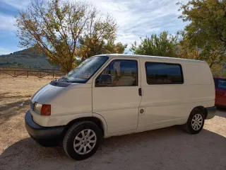 Furgoneta volkswagen transporter t4 1.9td 68cv Año 1996 200mil km, nacional, camperizada, no homologada. La furgoneta es la última clásica de Volkswagen y el motor más fiable de esta marca. En mayo se puede hacer vehículo histórico y disfrutar de todas las ventajas que conlleva. Motor prácticamente irrompible. Estado impecable y muy mimada. Todas las revisiones hechas antes de los 15mil kilómetros . Kit de distribución recién cambiado Revisión recién hecha . Recién pasada la ITV . Luna delantera y trasera nuevas . Ruedas al 80% Batería nueva Pastillas de frenos nuevas 2 juegos de llaves Todos los arreglos hechos en un taller especializado en Volkswagen y con factura. La compré con 60mil km desde entonces todos los kilómetros de carretera. Nunca ha sido un vehículo de carga. Duerme en garaje. ITV cada seis meses sin necesidad de quitar los muebles. En papeles vehículo mixto Muy buen estado de pintura y de chapa. Se entrega con todos los parasoles térmicos, colchón, cortinas y nevera para enfriar con hielo. Muebles con amplio almacenaje y hueco trasero de maletero. Viajan y duermen dos personas. El motivo de la venta es por cambio de proyecto.