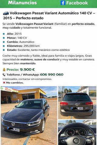 Vendo volkswagen passat b6 ańo 2006 En buen estado general ITV hasta enero del 2027 Tiene el motor cambiado por negligencia del mecanico Embrague con 5000km Distribución con 5000km Silinblock de brazos de suspension nuevos mas informacion por privado Típicos Roces del uso por su edad Se puede ver y probar sin compromiso y llevar al mecanico que desee ACEPTO CAMBIO POR OTRO COCHE NO ME URGE SU VENTA