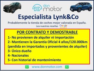 PROBABLEMENTE LA TIENDA DE COCHES MEJOR VALORADA EN ESPAÑA +INFO Y FOTOS EN: DONMOTOR.COM Fotos de catálogo. Disponemos permanentemente de UNIDADES EN STOCK NO PUBLICADAS de este modelo en sus diferentes versiones, color, rango de precio y kilometraje. TODAS EN UN EXCELENTE ESTADO Y CON LA MEJOR RELACIÓN CALIDAD/PRECIO. No dude en preguntarnos. Nuestros Lynks NO PROVIENEN DE ALQUILER, MANTIENEN LA GARANTÍA OFICIAL DE 4 AÑOS/120.000KM (al contrario que los importados y de alquiler), SON DE ÚNICO DUEÑO, SON NACIONALES Y TIENEN HISTORIAL DE MANTENIMIENTO. Todo reflejado en contrato y demostrable. INSTALAMOS BANDEJA RETRÁCTIL Y BOLA DE REMOLQUE A PETICIÓN DEL CLIENTE. IVA deducible. Transferencia incluida. Consultar leasing y renting. Nuestros clientes nos avalan; lea sobre nosotros en reseñas de Google, foros, internet en general… Certificado de siniestralidad y kilometraje. Aceptamos coches como pago. Posibilidad de entrega en islas. Disponemos de distintas ofertas de financiación con buenas condiciones, de hasta el 100% del importe y plazo de amortización flexible. Pídanos información. ¡SÍGANOS EN RRSS! DONMOTOR1832.COM La información del anuncio es informativa, sin carácter contractual ni vinculante, y está sujeta a disponibilidad del concesionario.