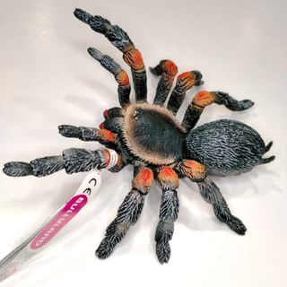 Tarántula de rodillas rojas Brachypelma smithi. Figura completamente nueva, original de la marca Bullyland. Tamaño: 11,5 cm de largo. Puedes recogerlo en tienda La Extinción (calle San Andrés 23-27 local 4, 15003, A Coruña), o te lo envío por el sistema de Wallapop.