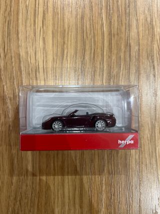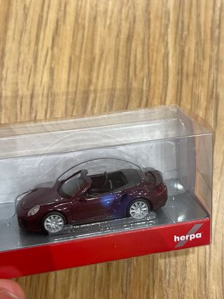 Miniatura de coche Porsche Turbo (R) para coleccionistas. Un modelo detallado que captura la esencia del deportivo. - Color burdeos. - El tamaño se ve en la última foto en comparación con la mano. - Presentado en su embalaje original.