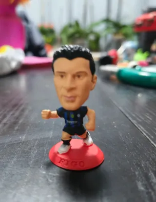 Figura coleccionable del futbolista Figo. - Base roja con el nombre FIGO grabado. - Equipación del Inter de Milán.