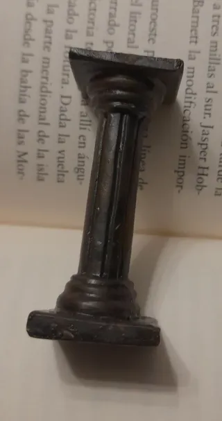 Detalle arquitectónico en miniatura, ideal para casas de muñecas o coleccionismo. - Réplica de columna clásica. - Material: Metal oscuro.