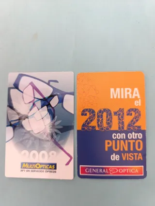 Calendarios publicitarios. Calendario de bolsillo de ópticas de los siguientes años: - 2008 MultiÓpticas. - 2012 General Óptica. Precio 0,40€ unidad.