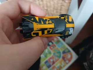 Coche de juguete HotWheels con un diseño deportivo y llamativo. - Colores: amarillo y negro. - Detalles gráficos de carreras. - Número 36 en la parte trasera.
