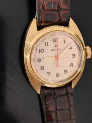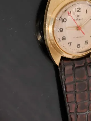 Reloj de pulsera con correa de cuero verde y esfera verde. - Correa de cuero original, habría que sustituirla. - Esfera verde. - Multifunción. - Resistente al agua.