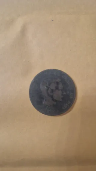 Moneda de 2 céntimos de Alfonso XIII, año 1905. - Canto con inscripción. - Anverso: Retrato de Alfonso XIII. - Reverso: Escudo de España.