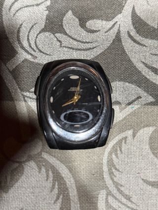 Reloj Casio AQ-E10 con diseño analógico y digital. - Esfera negra con detalles dorados. - sin correa