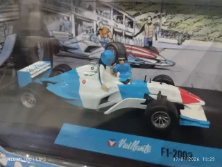 Lote de 4 coches de Fórmula 1 a escala 1:43. - Coche principal con decoración Vaillant y F1-2002. - Coche secundario con decoración de bandera estadounidense. - Incluye figuras de pilotos.