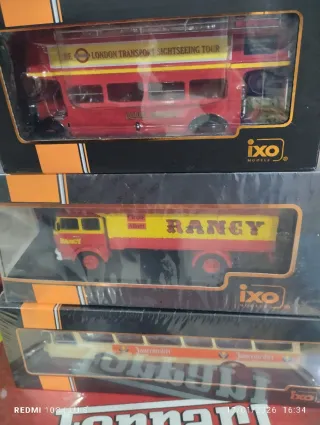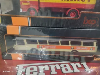 Lote de tres vehículos a escala 1:43 de la marca IXO. - Un autobús Jägermeister. - Un camión Rancy.