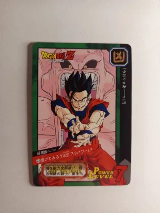 Carta coleccionable de Dragon Ball Z. - Personaje: Son Gohan. - Poder: 7. - Habilidad: ¡Despierta tu potencial oculto! ¡El guerrero invencible, nace! - Idioma: Japonés.