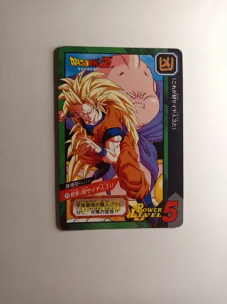 Carta coleccionable de Dragon Ball Z. - Personaje: Goku Super Saiyan 3. - Incluye texto en japonés. - Power Level: 5.