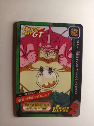 Carta de Dragon Ball GT de la serie Power Level. - Personajes: Goku y Pan. - Incluye texto en japonés y número de poder 2.