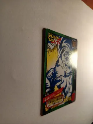 Carta de Dragon Ball GT con el nivel de poder 7. - Personaje: Gran mono - Ataque: ¡Dispara! ¡Rayo de fuerza! - Habilidad: ¡Todo a cenizas! ¡Enfurece! ¡El rayo de fuerza del gran mono! - Símbolo: 必 (Obligatorio)