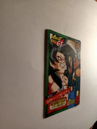 Carta de Dragon Ball GT con nivel de poder 9. Presenta a Goku y Vegeta en su transformación Saiyan 4. - Personajes: Son Goku & Vegeta - Ataque: Kamehameha & Galick Gun - Nivel de poder: 9