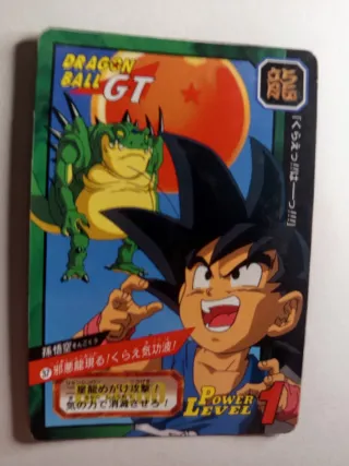 Carta de Dragon Ball GT con Power Level 1. - Ilustración de Shenron y Goku. - Incluye texto en japonés. - Diseño con temática de Dragon Ball GT.