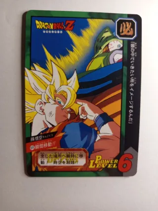 Carta de Dragon Ball Z con Power Level 6. - Incluye la imagen de Goku y Cell. - Texto en japonés. - Habilidad: Instant Transmission.