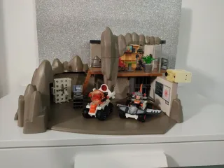 Set de Playmobil de una base secreta en una cueva con dos vehículos. -top agents referencia 4875 - Incluye figuras y accesorios. - Base con detalles de cueva y laboratorio. - Dos vehículos de espionaje. - Puerta de bóveda y elementos de seguridad.
