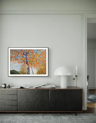 Preciosa pintura al óleo de un paisaje otoñal con árboles de colores vibrantes. Original y firmada. Realizada en tablero impromado. - Técnica: Óleo sobre lienzo. - Motivo: Paisaje de otoño. - Marco:noIncluido. - medidas. 43×32 cm.