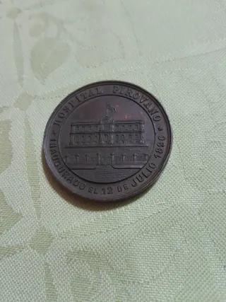 Medalla conmemorativa del Hospital Piovano. - Inaugurada el 12 de julio de 1896. - Diseño detallado del edificio. - Inscripción en relieve.