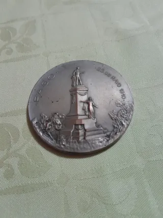 Medalla conmemorativa de la Revolución de Mayo de 1910 en Argentina. - Diseño conmemorativo. - Inscripción PASO y 25 DE MAYO 1910. Peso aproximado: 98 gr