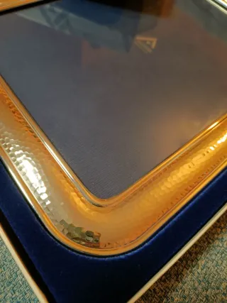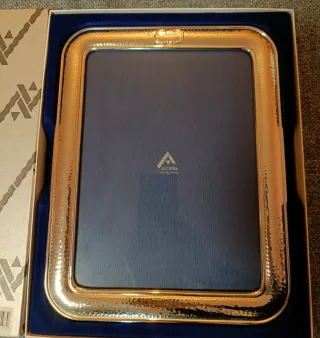 Elegante marco de fotos de plata de ley de la marca Alcudia. - Modelo Martele. - Tamaño para foto de 18x24 cm. - Presentado en su caja original.