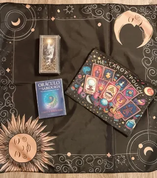 Pack esotérico Tarot, oráculo, tapete y bolso.