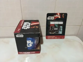 🌀 PRECIO FIJO 🌀 NUEVAS. 👾 EL PROCESO DE EMBALAJE SERÁ GRABADO. 💜 VENDEDOR SERIO Y FIABLE. Set de coleccionismo de Star Wars que incluye una taza y tres gomas de borrar. - Taza con diseño de Star Wars. - Tres gomas de borrar con imágenes de personajes de Star Wars (Darth Vader, Stormtrooper). - Producto oficial de Star Wars.
