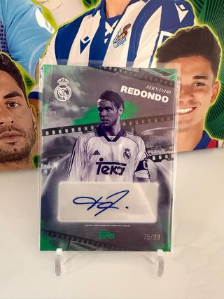Cromo de Fernando Redondo, jugador del Real Madrid. - Edición limitada 75/99. - Certificado por Topps. - Autógrafo del jugador.