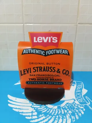 🌀 PRECIO FIJO 🌀 En buen estado. De mi colección personal. 🛟 EL PROCESO DE EMBALAJE SERÁ GRABADO. ♥️ VENDEDOR SERIO Y FIABLE. Expositor de la marca Levi's para calzado. - Diseño con el logo de Levi's. - Incluye el texto Authentic Footwear. - Menciona Levi Strauss & Co. San Francisco, Cal.