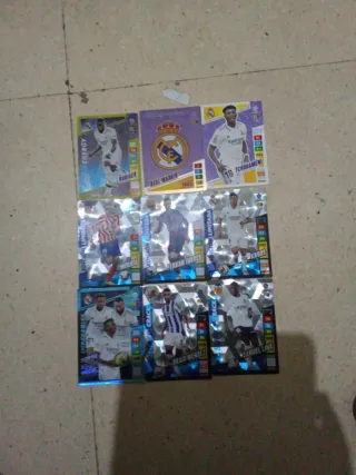 Colección de cartas de fútbol de LaLiga de la temporada 2022. - Incluye cartas de jugadores como Rüdiger, Tchouaméni, Ferran Torres y Kroos. - Algunas cartas son de edición limitada o 'crack'. - Cartas de equipos como Real Madrid y Atlético de Madrid.