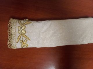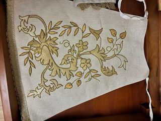 Saya de virgen en damasco y forro granate. Encaje en oro