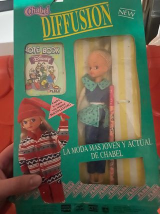 Pack de muñeca Chabel Diffusion con un cuaderno Note Book de Disney. Incluye un bolso-llavero. - Muñeca Chabel. - Cuaderno Note Book con personajes de Disney. - Bolso-llavero. - Diseño Diffusion de Chabel.
