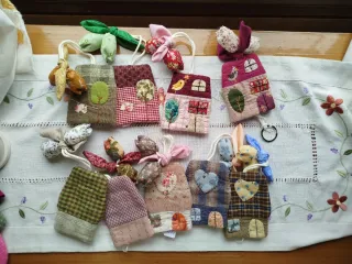 Llaveros con diseño de casitas de setas hechos a mano con la técnica Patchwork. El llavero funciona con una anilla interna. Tira de la cuerda para recogerlas. Tiene un cierre metálico para evitar que se salgan una vez recogidas. Mantén tus llaves bien ubicadas y guardadas en el bolso para que no se enreden con otras cosas. Medidas: 12cm x 8cm ¡Diseños únicos!