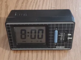 Reloj despertador digital de la marca Casio. - Diseño compacto y moderno. - Pantalla digital clara. - Función de alarma. - Falla el Digital, en el 2 y el 5. Ver fotos.