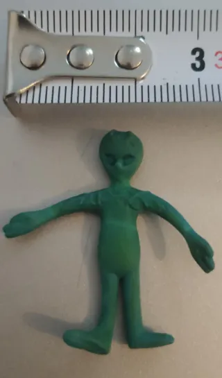 Figura coleccionable de un mini alienígena de estilo vintage. Ideal para coleccionistas. Guy Alien, GumAlien, GomAlien, Green Alien, entre otras podrían ser su fabricante. Para envío económico preguntar.