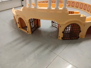 Réplica del Coliseo Romano, ideal para juegos. - Diseño inspirado en el circo romano. - Estructura de plástico resistente. Hay que sustituir alguna reja. Por eso el precio