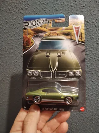 Coche de colección Hot Wheels, modelo 70 Pontiac GTO Judge. - Serie Silver. - Color verde con detalles. - Presentado en su empaque original.
