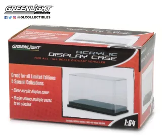 Vitrina de acrílico transparente con base negra para exhibir vehículos a escala 1:64. - Ideal para colecciones limitadas y especiales. - Cubierta de acrílico transparente. - Diseño apilable para múltiples vitrinas.