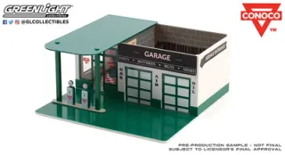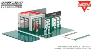 ARTÍCULO NUEVO- PRECIO CERRADO Diorama de gasolinera Conoco a escala 1/64. - Incluye surtidores de gasolina, aire y aceite. - Detalle de garaje con puertas seccionales. - Techo y base en color verde. - Marca: Greenlight Collectibles.