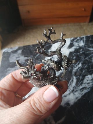 Detallada figura de un dragón, elaborada en plomo. Su diseño intrincado captura la esencia mítica de estas criaturas. - Material: Plomo. - Diseño: Dragón con ramas.