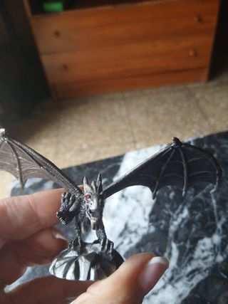 Figura decorativa de un dragón. - Material: Plomo. - Detallado diseño con alas y cuernos. - Ojos rojos.