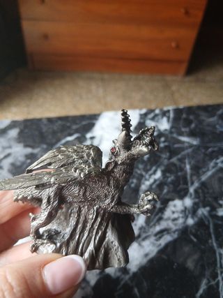 Figura decorativa de un dragón. - Material: Plomo. - Detallado diseño con alas y gemas.