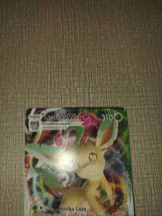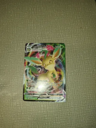 Carta Pokémon de Leafeon VMAX con 310 PS. - Tipo: Hoja - Ataque: Hierba Lazo - Coste de Retroceso: 2 - Debilidad: Fuego x2 - Resistencia: Ninguna - Número de Puntos de Premio: 2