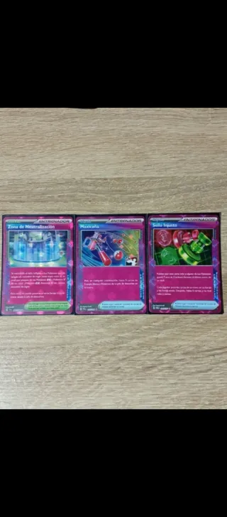 Lote de 3 cartas de Entrenador de Pokémon. - Zona de Neutralización - Maxicaña - Sello Injusto