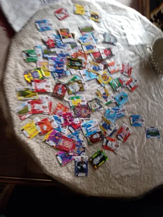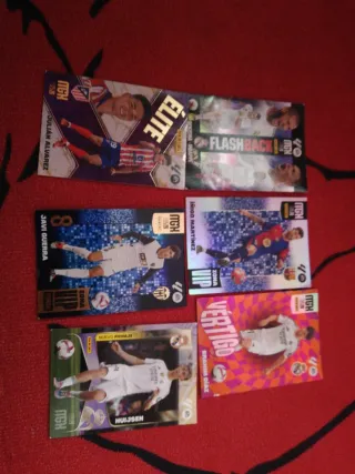 Colección de cartas de fútbol de temporadas pasadas. - Incluye cartas de jugadores como Diego Costa, Aubameyang, Griezmann, Ronald Araújo y Jordi Alba. - Algunas cartas son de tipo Nuevo Fichaje, Balón de Oro, Excellence y Hero. - Cartas de la colección ¡Vamos! y Air Force.