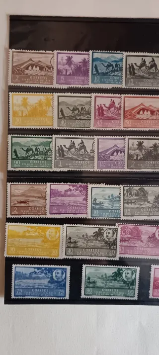 Colección de sellos de las antiguas colonias españolas. - Incluye sellos de Territorios Españoles. - Varios valores y diseños. - Sellos de Del Golfo de Guinea y República Española.