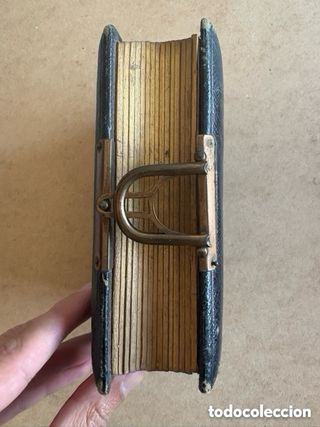 Álbum de fotos antiguo, de fabricación artesanal, datado alrededor de 1800. Presenta un diseño clásico con esquinas metálicas decoradas. - Cubierta de material similar al cuero. - Esquinas metálicas ornamentadas. CIERRE PLATA-LATERALES,DECORADOS-COSIDOA MANO-PIEL ESPAÑOLA DE EPOCA-PORTAFOTOS PEQUEÑAS- AÑOS 1800- FABRICADO ARTESANALMENTE- UNA OBRA DE ARTE DESTACAR OS RAYAS EN PIEL LOMO-