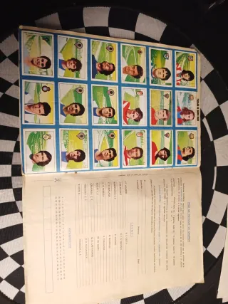 Álbum de cromos de 1987 casi completo. La hoja del medio se ha soltado un poco de la grapa